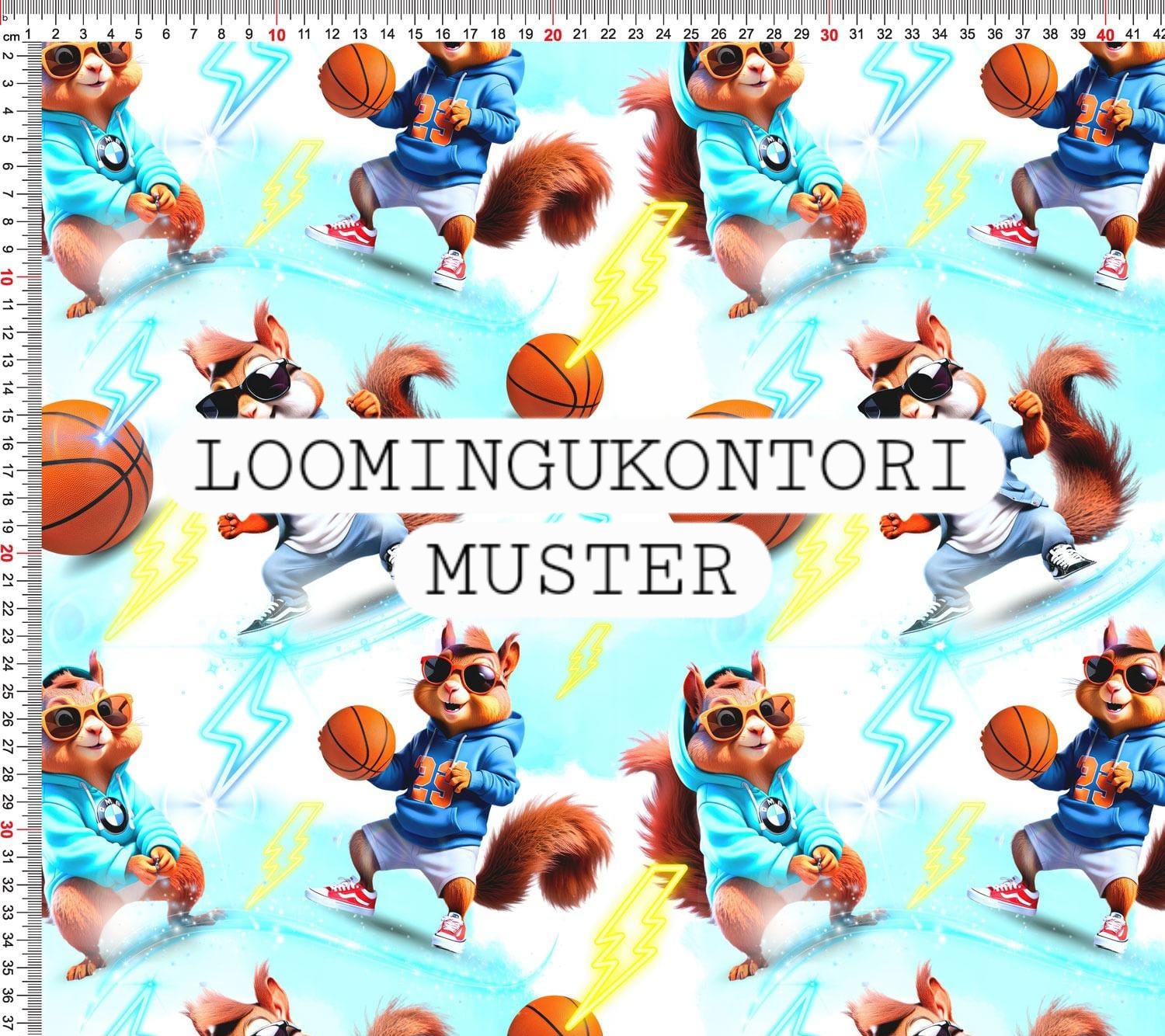 VIIMASED KANGATÜKIDPuuvillatrikotaaž “Korvpalli oravad” 1.7m tükk