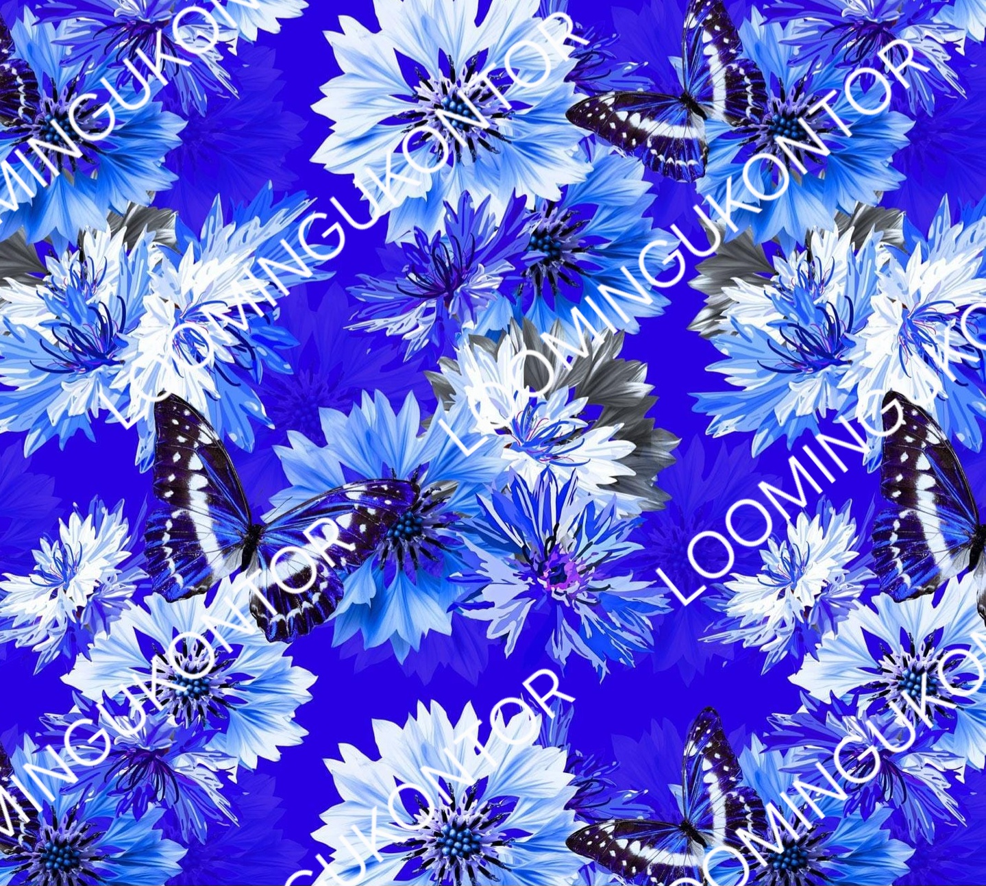 Puuvillatrikotaaž “Loomingukontori liblikad ja rukkililled”