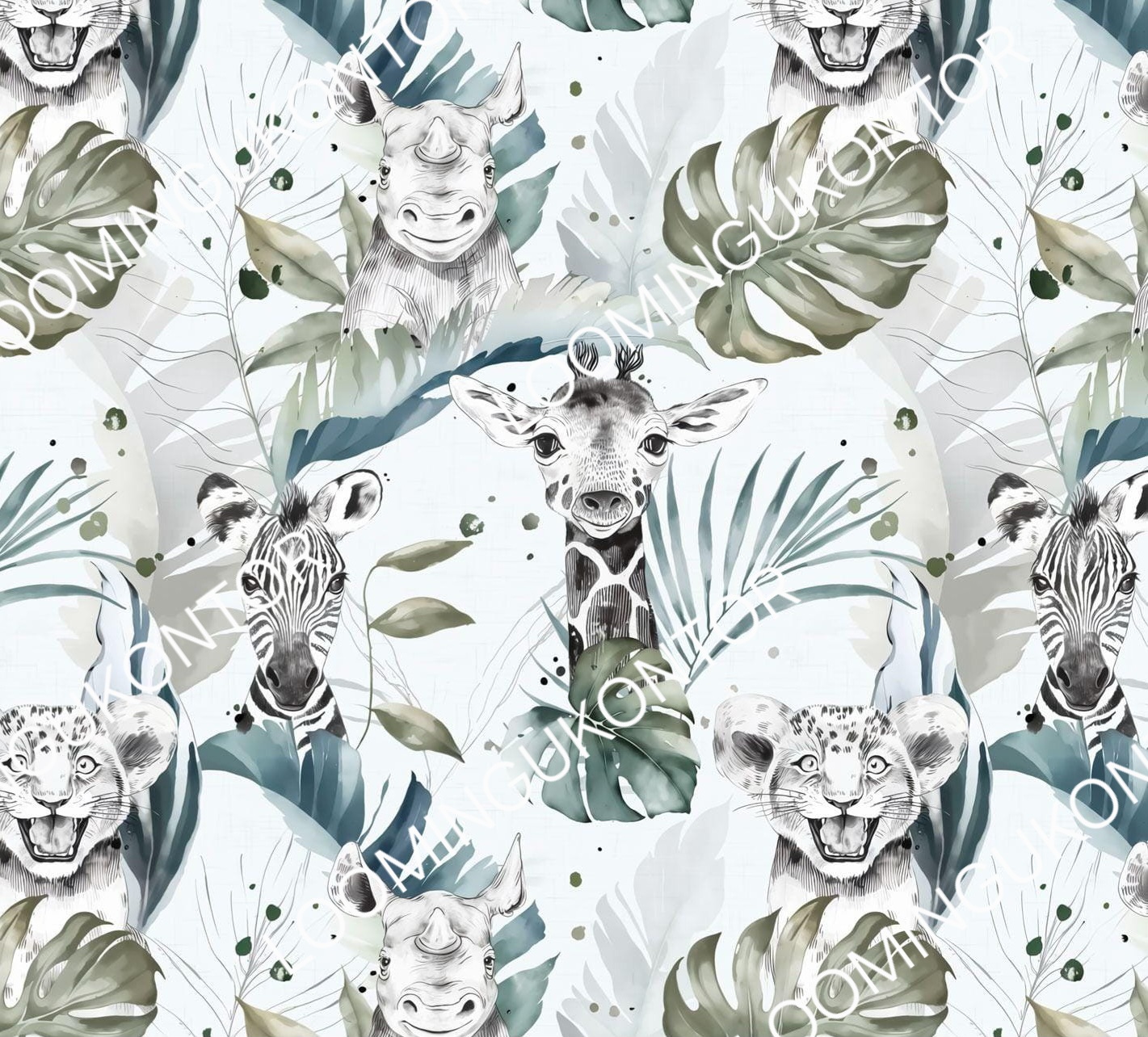 Puuvillatrikotaaž “Safariloomad palmilehtedega”
